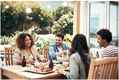 If your party involves kids, you’ll want to keep the food simple and easy to eat with hands, so burgers, hot dogs, chips and some watermelon are the way to go. You’ll also want to keep them occupied with simple games or more active options such as a soccer ball, mini trampoline or a sprinkler to run through and keep them cool. When daylight starts to fade, you can set up a backyard movie or camp-out with some tents to settle the night down. It never hurts to tire the young ones out so the grownups can have some chill time for themselves!